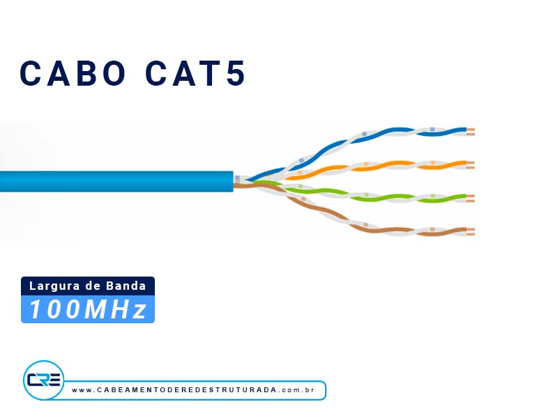 Um dos primeiros cabos de rede utilizados, o cabo de rede cat5 (Categoria 5) é um tipo de cabo de rede com par trançado que foi amplamente utilizado no passado para redes de computadores. Ele foi o antecessor do Cat5e e é considerado obsoleto para novas instalações. Os principais motivos para o cabo de rede Cat5 não ser mais utilizado, é sua limitação em relação à interferência e à velocidade.