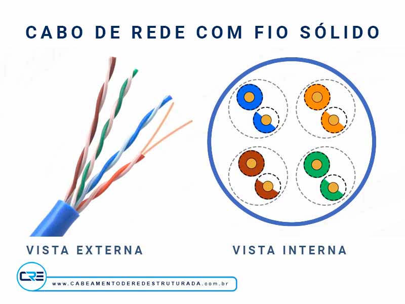 Existem dois tipos de cabos de rede, o sólido que é mais comum o uso em 99% das instalações e o cabo de rede flexível.