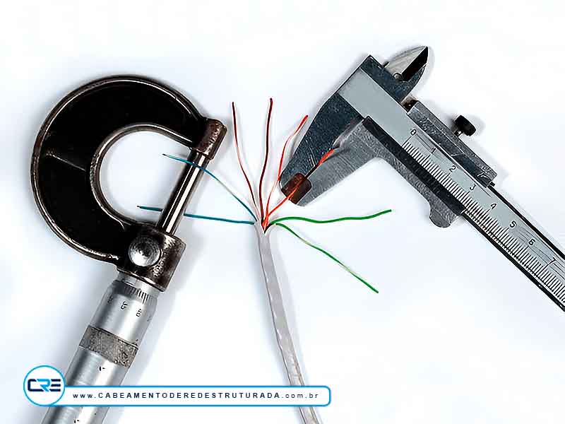 Pode-se medir também a bitola do cabo de rede com paquímetro ou micrômetro.